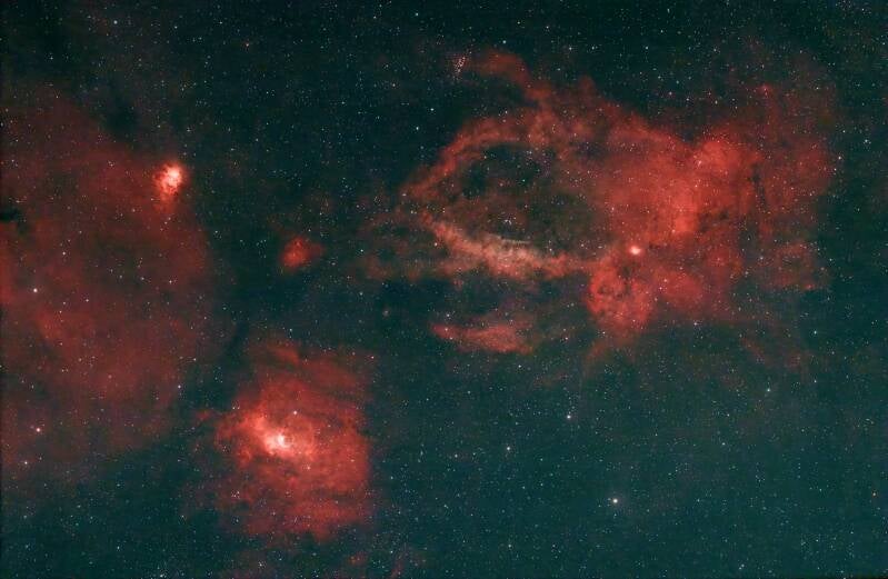 NGC 7635 (Bubble nebula) + SH2 - 157 (Lobster Claw Nebula).