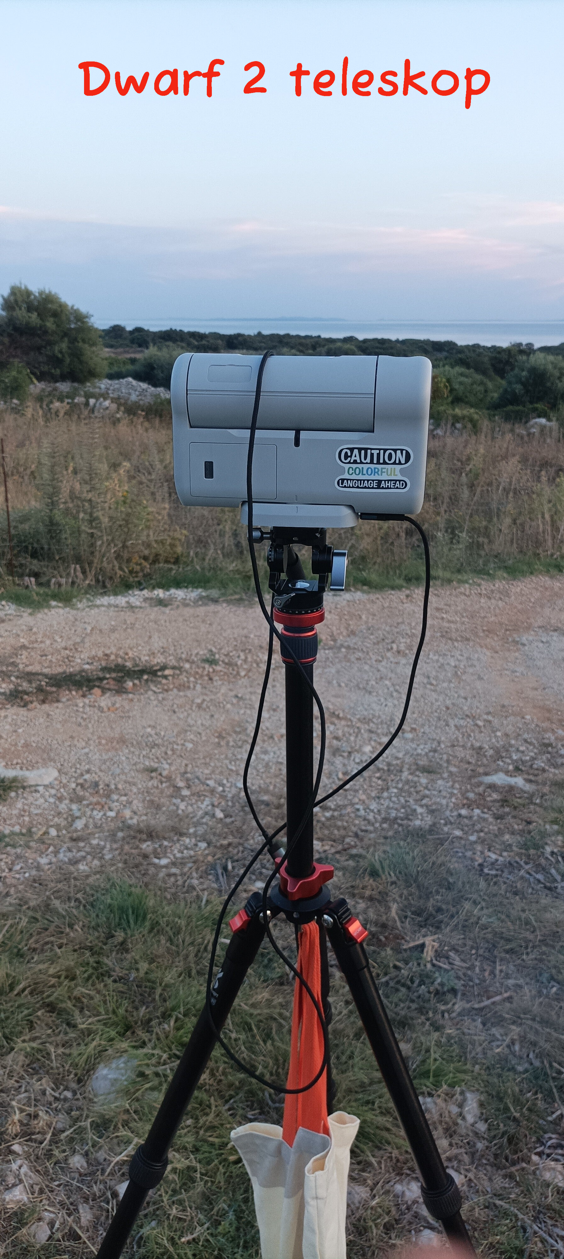V nedeljo je bilo vreme bolj tako-tako, zato sem na teren peljal samo Dwarfiča. Vreme je res bilo slabo za resno fotografijo, Dwarfič je pa vseeno naredil par fotografij Lune in meglice Laguna (M8). Naslednji dan, sem nafilal vse akumulatorje, power banke in power tanke, naložil tarčo v prenosniku in se pozno popoldan odpravil na teren. Lokacija je približno 10km oddaljena od Novalje, in dokaj "svetlobno čista", tam nekje na sever sicer prebija svetlobno onesnaženje iz otoka Raba, na jugu, pa se nepotrebno bohoti Novalja in seveda Zrče.