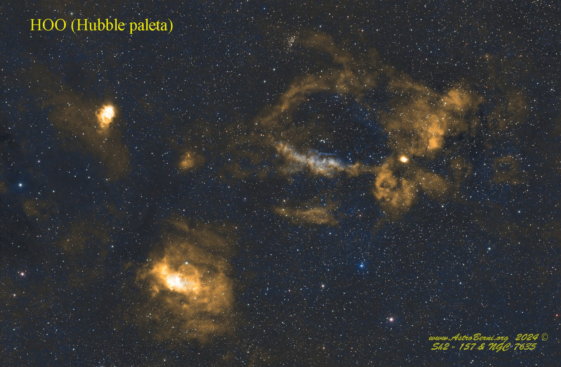 Širokokotno postavitev (Sh2-157 in NGC 7635) imam obdelano (Juhu), za samo meglico Mehurček in posnetke Dwarf2 teleskopa, pa še nisem našel volje, niti časa, da jih bi konkretno obdelal (enkrat bom, leto je še dolgo).