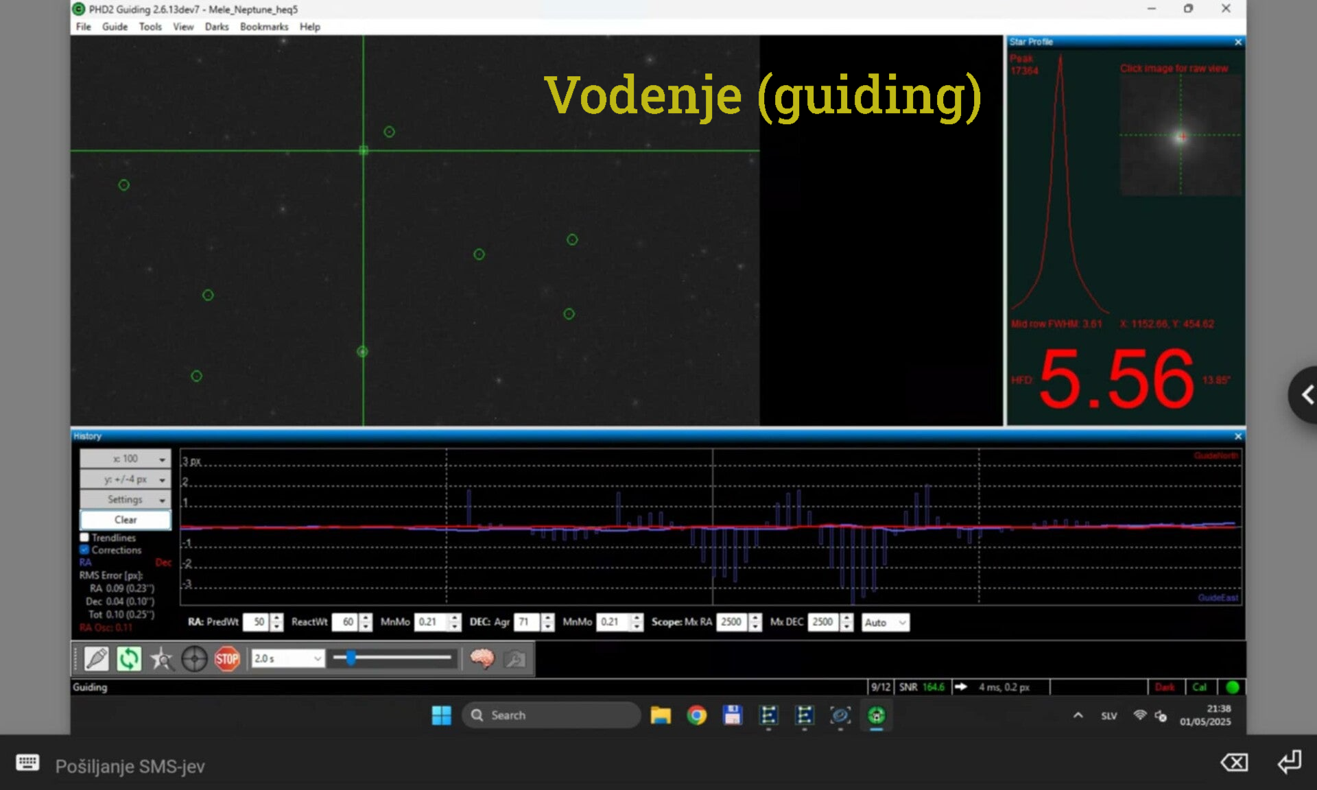 Zajem s programom N.i.n.a, polarna nastavitev s programom SharpCap, vodenje Phd2.