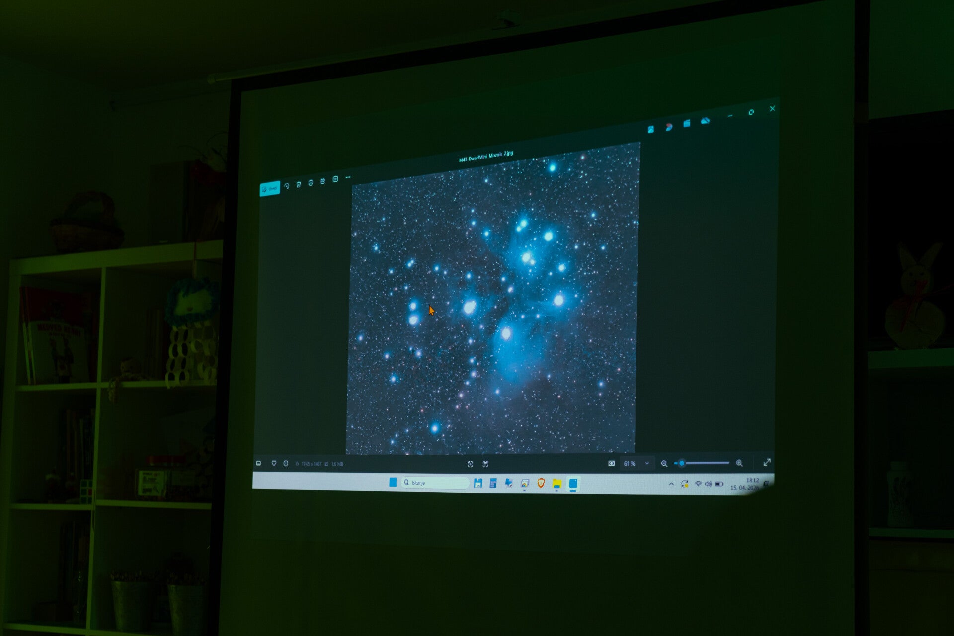 Na hitro, sem razložil kakšno opremo uporabljam pri svojih astro eskapadah, na projektorju pokazal fotografije, ki jih nisem dal razvit, malo "utrujal" z fiziko, kemijo in matematiko, potem pa je na srečo udeležencev, zmanjkalo baterije na prenosniku (v žaru predstavitve, sem pozabil, da prenosnik ni napolnjen).